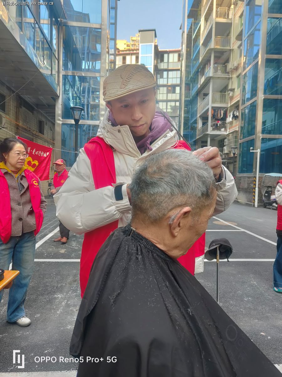 不一会儿,小区里的老人们陆续来到志愿服务区。志愿者们热情地迎上前,小心翼翼地搀扶着老人,将他们带到相应的服务区域。理发区,一位志愿者手法娴熟,手中的剪刀在老人头发间灵活穿梭,不一会儿,原本有些凌乱的头发变得整齐利落。老人看着镜子中的自己,脸上露出了满意的笑容,连声夸赞:“这手艺,真是没得说!”