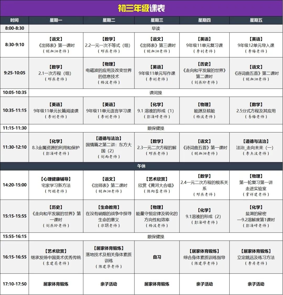 初中线上教学课表